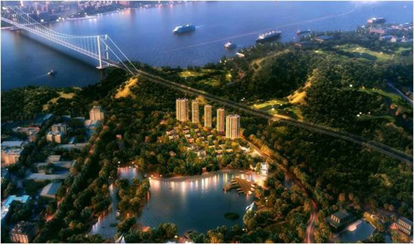 本项目位于江阴市黄山湖公园北、皇冠花园东。总占地面积48,648平方米,总建筑面积11.3万平方米,包括5栋高层、44栋别墅、1栋商业,容积率为1.5。