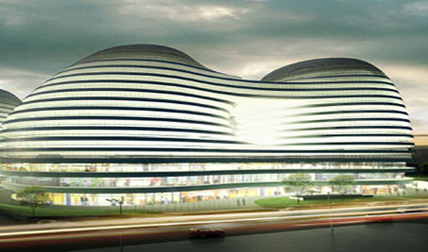 银河SOHO位于北京CBD中央商务区内。东至商务中心区50米中轴线绿化带;南侧为商务中心区三号路;西侧为东大桥东侧路;北侧紧邻朝阳路。建设用地面积19,975.06平方米,总建筑面积约为15万平方米,集商业,写字楼为一体,由两栋十一层的环状裙楼和一栋二十五层的主楼咬合组成。两栋环状裙楼之间用18米的露空通廊隔开,但在每层均有楼梯、扶梯和连廊在水平、垂直方向连接,形成一个有机的整体。商业部分面积约为6.45万平方米,写字楼面积约为5.67万平方米。商业范围为B1-5层。