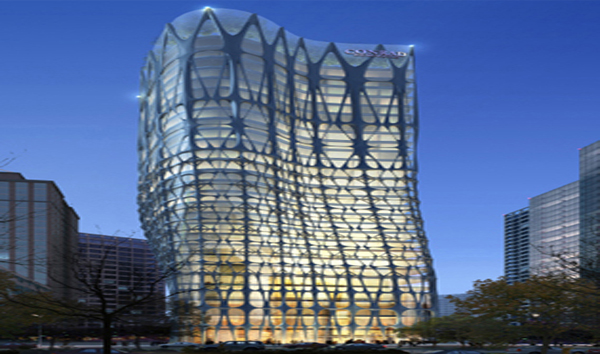 总建筑面积55,237平方米,檐高为106.95米,总投资额为80,000万元。地下四层,地上25层,位于北京市东三环中路白家庄西里。