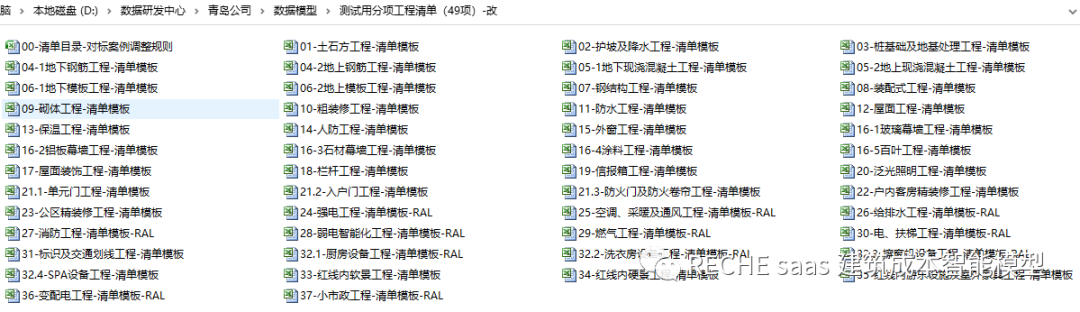 所以我们从便于同类数量统计、指标统计、调价便捷等数十条标准对清单重新划分,将一个完整项目涉及全专业的清单拆分为57个清单合集,每一个清单合集的范围是完全统一的,即脱离了不同合约体系的束缚。