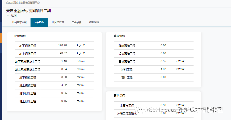√项目造价指标,系统根据导入表单自动汇总分析各分部工程单方指标;