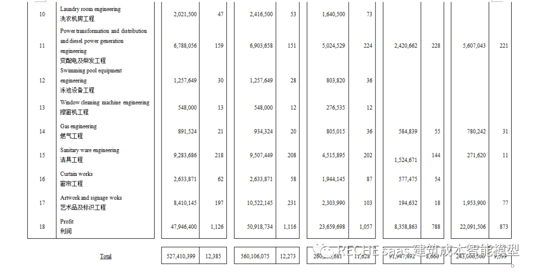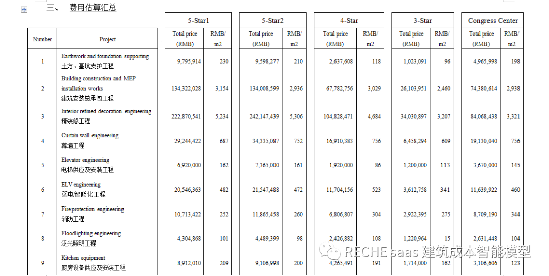 整体投资成本汇总表:是分业态、分专业汇总的,如果是国际项目,还可以提供多语种的成果文件。