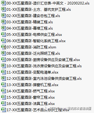 各专业的清单列表:以其中一个业态,五星级酒店为例,除常规建安项目外,还包含活动家具、艺术品、布草等内容,详尽到酒店在投入运营前需要的所有采购内容。