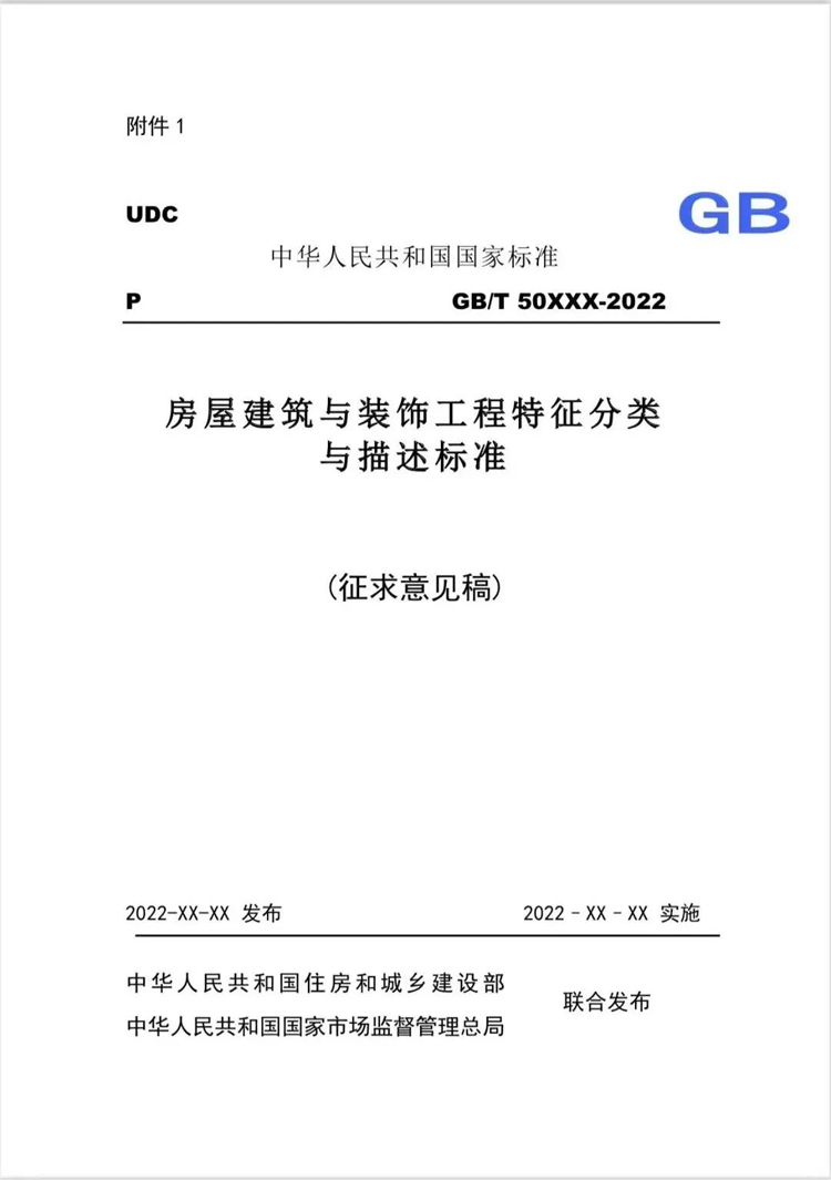 附件:1.《房屋建筑与装饰工程特征分类与描述标准》(征求意见稿)