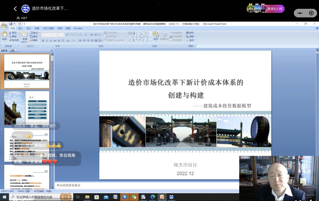 2022年12月17日,百富策略白菜网-百富策略网站论坛|百富策略免费手机论坛|白菜全讯0008|最全白菜网|董事兼首席执行官李宏颀应北京工程管理科学学会邀请进行主题为“造价计价市场化改革(一)新计价成本体系的创新与构建”的公益讲座,讲座以线上方式顺利开展。