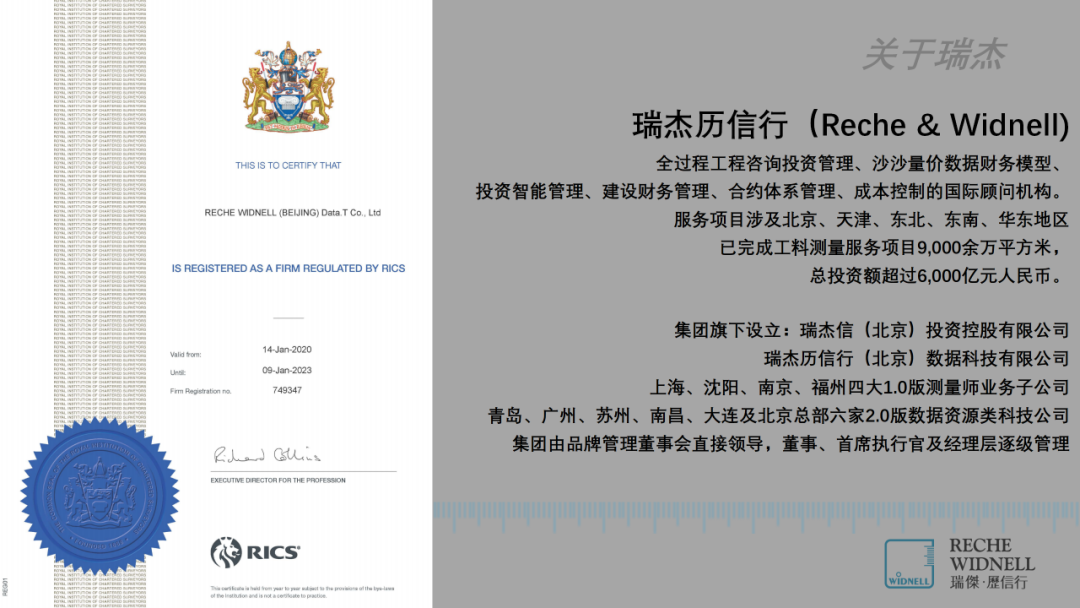 瑞杰历信行作为英国皇家特许测量师学会(RICS)规管公司,英国皇家特许测量师事务所,公司秉持RICS的核心原则,发挥行业内的领先地位和进取精神,获得合作伙伴的高度信任!